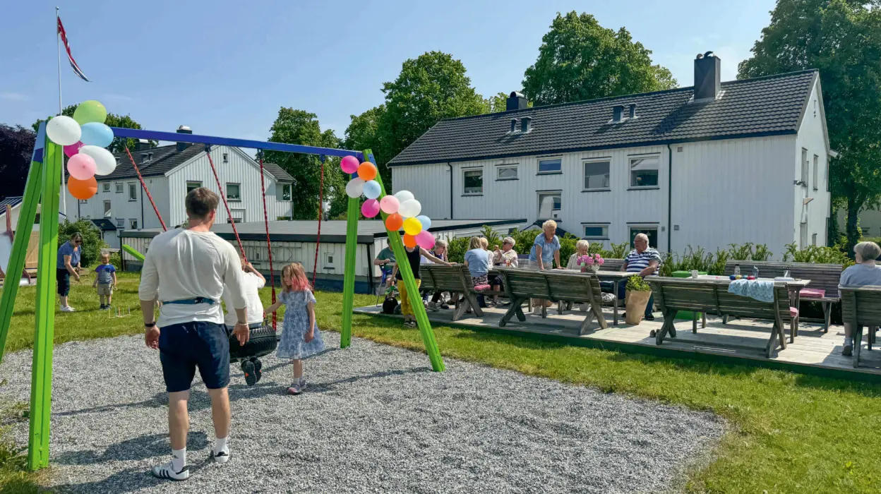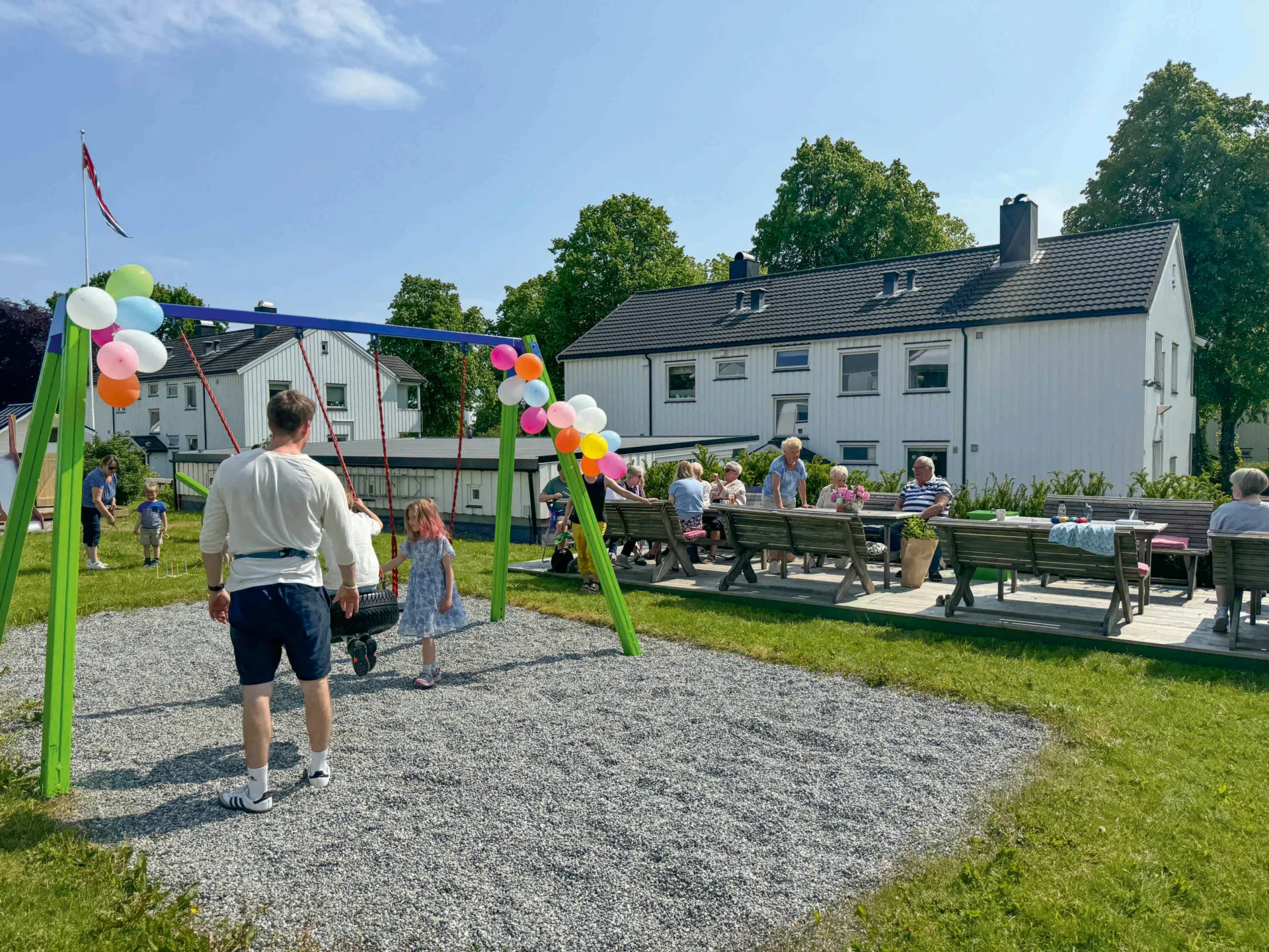 Det var god stemning da den nye lekeplassen i Høgnakken ble åpnet tidligere i sommer. Det var slutten på mange år med venting. – Vi har lenge ønsket oss ny lekeplass. Jeg flyttet hit til borettslaget for fire år siden, og da hadde det allerede vært diskusjon om ny lekeplass en god stund. Så det var på høy tid at vi fikk dette på plass, sier styreleder Heidi Hollingen. Borettslaget deler lekeplassen med MOBO ungdomsleiligheter. Med 16 leiligheter i borettslaget og 14 ungdomslelighetene betyr det masse barn i ulike aldre i området.