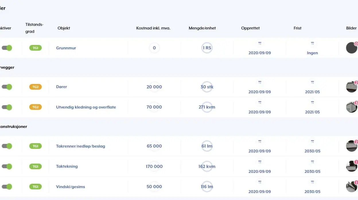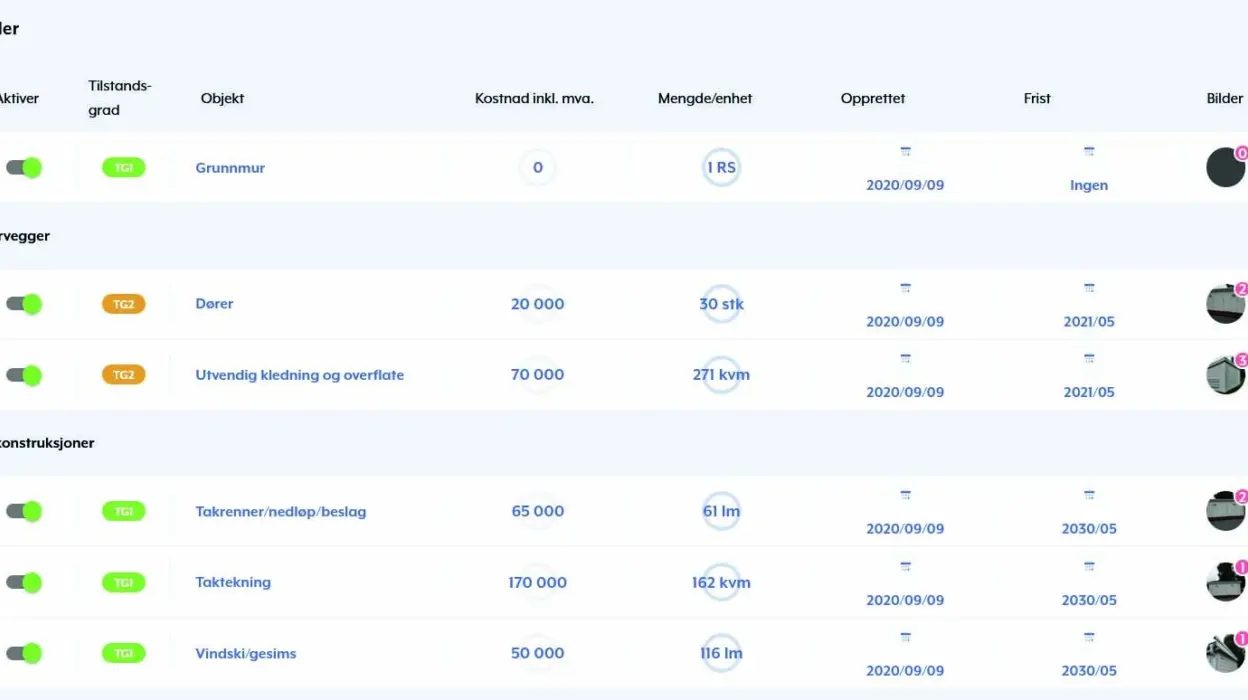 Den tydelige oversikten gjør det enklere å kommunisere med boligeierne og skape felles forståelse omkring de vedlikeholdsprosjektene som står for døren.